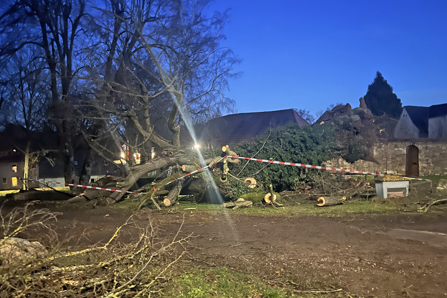 Hier stand bis Neujahr 2025 eine solitäre Winter-Linde (Tilia cordata) mit einem geschätzten Alter von etwa 300-350 Jahren. Sie hatte einen Stammumfang von fast 5 m und eine Höhe von 20 m. Sie war Teil des Dorfwappens und seit 1937 Naturdenkmal.