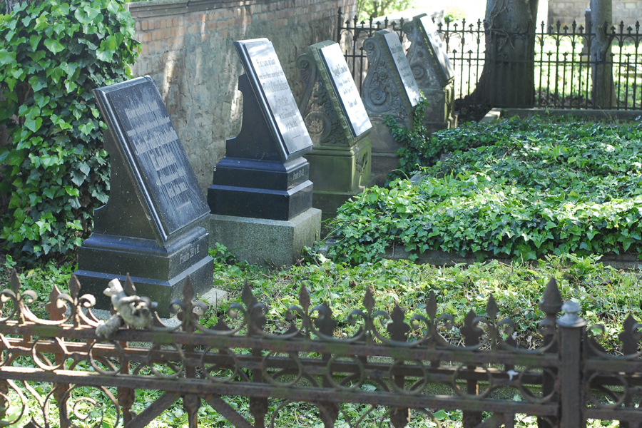 Linker Hand reihen sich die Grabanlagen ehemaliger Großbauern, wie Boltze, Bedau, Reussner, Zorn …